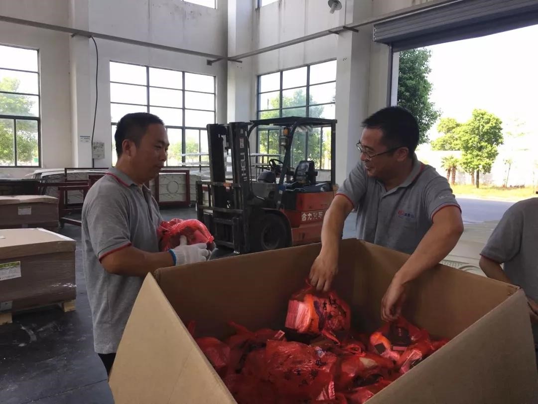 公司负责人高度重视,并指示相关部门必须做好一线员工后勤保障工作,确保员工身心健康,安全生产。为此,公司工会开展“送清凉到现场”活动,组织集中采购了一批防暑降温物品,包括常用防暑药品及洗化用品等。8月8日下午,工会主席黄建峰等公司领导,至生产现场为员工发放了防暑降温物品。