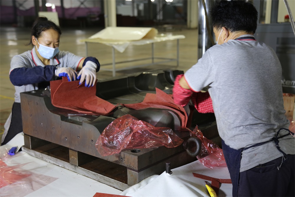 首先进行的是工艺抢答环节,接下来进入实质技能操作PK环节了,经过两轮的较量和用时,评委从产品表面质量,生产准备,工艺抢答,下料铺层,修边打磨,现场6S,团队合作等多维度综合打分,最终比赛结果第一名的是B组王云庆小组。